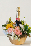 Elegante arreglo floral, que combina la frescura de Rosas y Lirios acompañado de una exquisita Botella de Champán. Perfecto para celebrar momentos especiales e ideal para sorprender en Aniversarios, Cumpleaños o cualquier Celebration.