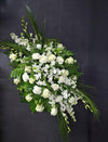 En Memoria, es una pequeña corona funeraria diseñada para honrar a los seres queridos. Está preparada con rosas, astromelias (lirio peruano), dendrobiums (flor de orquídea) blancas y stock de alta calidad, para satisfacer requerimientos de los más exigentes. Esta hermosa muestra de respeto y admiración es un detalle adecuado de homenajear a los seres queridos.