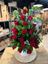 Descubre el arreglo "Enchule", una linda combinación de colores para disfrutar a cada instante. En una base blanca de cerámica encontrarás una selección de 25 rosas, lirios y verónicas. Encuentra la magia de un nuevo día y regala una alegría que dure para siempre.