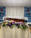 Un hermoso recuerdo que perdurará con el tiempo. El arreglo floral Hasta Luego es una hermosa composición de rosas, dendrobiums y cymbidiums (flores de orquídeas), liatris perfectamente diseñada para porta cenizas. Conserve los recuerdos preciados de su ser querido.