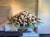 Casket Fuente de Luz es un arreglo tipo casket para cajas funerarias diseñada para honrar a los seres queridos. Está preparada con un surtido de rosas, hortensias, morucelas, dendrobiums (flor de orquídea) y stock de alta calidad, para satisfacer requerimientos de los más exigentes. Esta hermosa muestra de respeto y admiración es una forma adecuada de homenajear a los seres queridos.