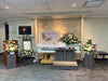 - un (1) arreglo funeral tipo casket de rosas, hortensias, cymbidiums y dendrobiums (flores de orquídeas) y stock.