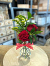 Dé un toque especial a una ocasión especial con nuestro arreglo floral sencillo diseñado con dos hermosas rosas con solidagos en un florero de cristal. ¡Regala a quien se merece la dulzura del Honey!