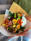 ¡Déjate envolver en una explosión de colores con nuestro bouquet Otoño! Incluye lirios tigre, claveles, rosas, hortensias, perico e hipérico, todo envuelto en papel de malla. Celebra la temporada con esta mezcla única y vibrante.