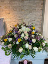 Sweet Violet es un arreglo tipo casket para cajas funerarias diseñada para honrar a los seres queridos. Está preparada con un surtido de rosas, hortensias, dendrobiums (flor de orquídea) y stock de alta calidad, para satisfacer requerimientos de los más exigentes. Esta hermosa muestra de respeto y admiración es una forma adecuada de homenajear a los seres queridos.
